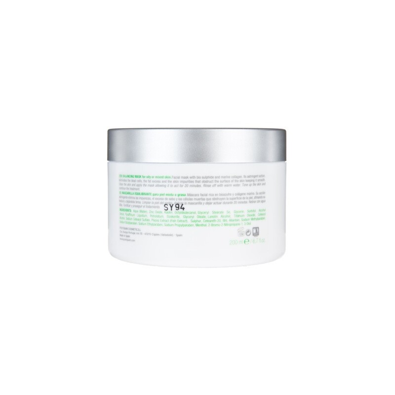 Mascarilla facial rica en bioazufre y colágeno marino. Su acción astringente elimina las
